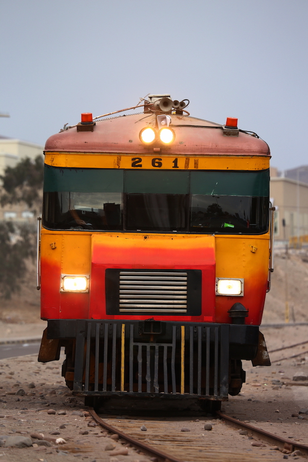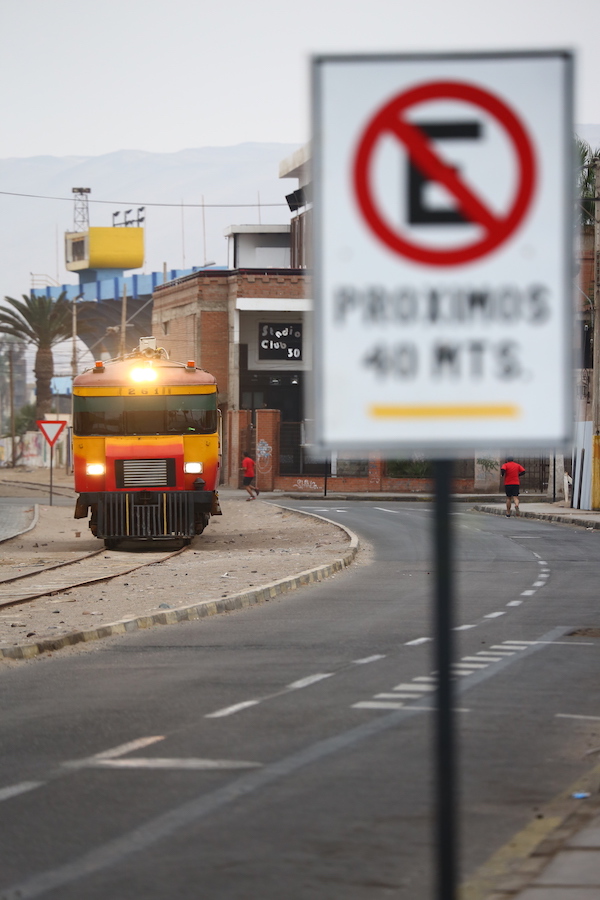 ここアリカはペルーと接する国境の街でもあり、1日2往復、旧式のディーゼルカーを改造した「国際列車」が走っているという情報だった。暫く待っていると、草臥れた軌道をたった1両の気動車が車体を大きく揺らしながらやってきた。天気も冴えないので、スナップ気味に一枚。どうもこの季節はアリカは毎日朝夕に曇り、昼は晴れるといった具合らしい。列車は朝夕にしか走らないから、この上ない撮り鉄泣かせである。