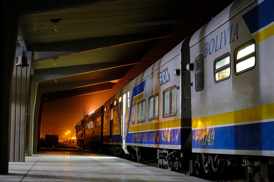 夜行列車"EXPRESO DEL SUR"、オルロまで定時ならば7時間の旅である。2等座席車で運賃1000円。メーターゲージの車内はやや窮屈である。深夜零時、日本のそれと同じ音色のホイッスルを響かせて、列車は南米の闇夜に滑り出した。