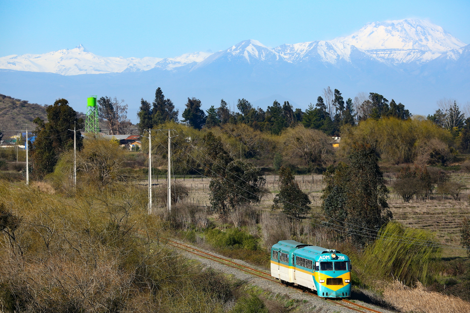 タルカの駅の近くで昼飯を済ませたら、街の外れを目指して8kmほどのんびりと歩く。跨線橋から遠くに眺め遣るはアンデスの山並み。この時期は山颪が厳しい。暫くして、2両編成のレールバスがやってきた。狙い通りの順光。着替えは無いが、撮り鉄の調子は完全回復である。