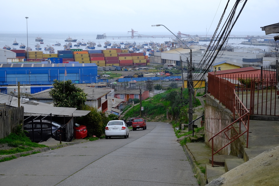 今回の旅、そして人生での最南到達地点であるコンセプシオン[Concepcion]は時折小雨が降っていた。撮り鉄は諦め、郊外電車で港町へ。この海の遠く西には日本がある。ロスバゲしていた荷物はここでようやく手許に帰ってきた。