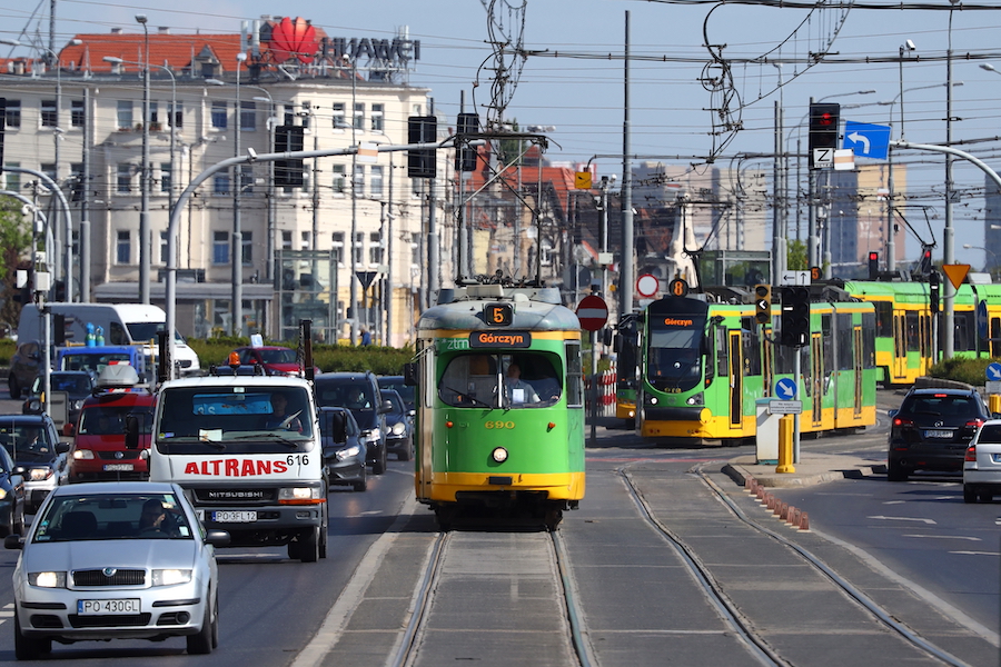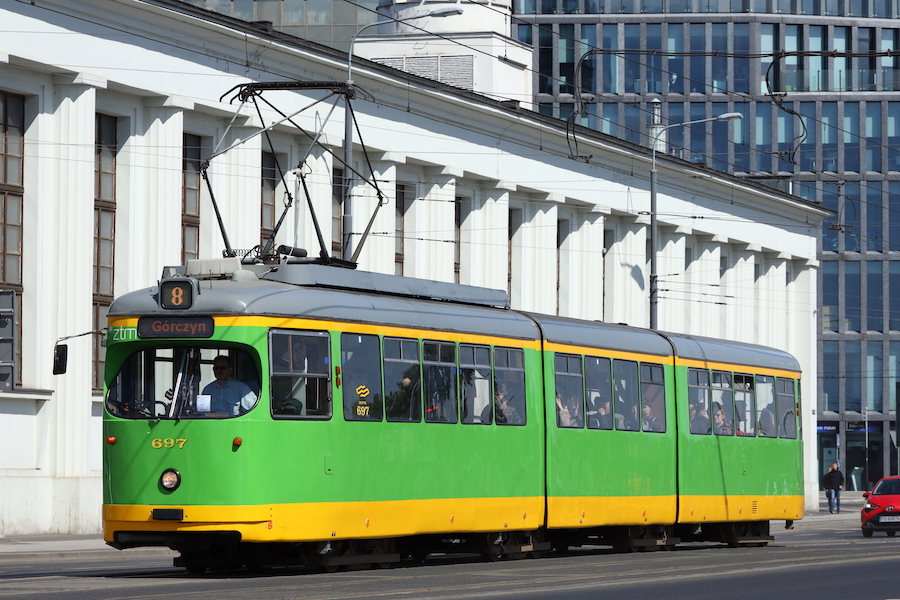 ポズナンにはトラムがある。翌日からも結局、母は観光、息子は撮影という塩梅であった。黄緑色の塗装のデュワグカーは、乗降扉のない方向から撮影すると巨大な芋虫のようである。