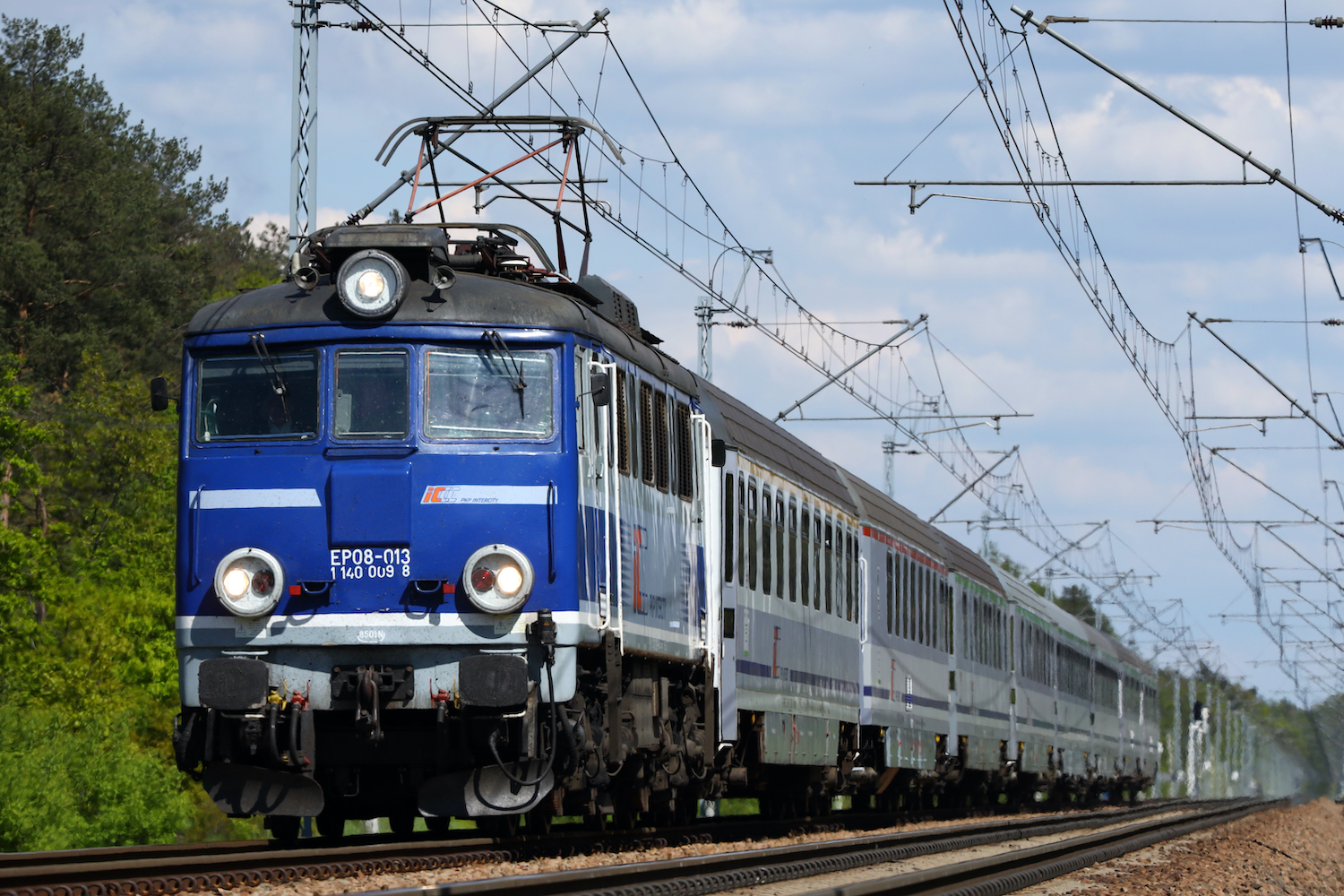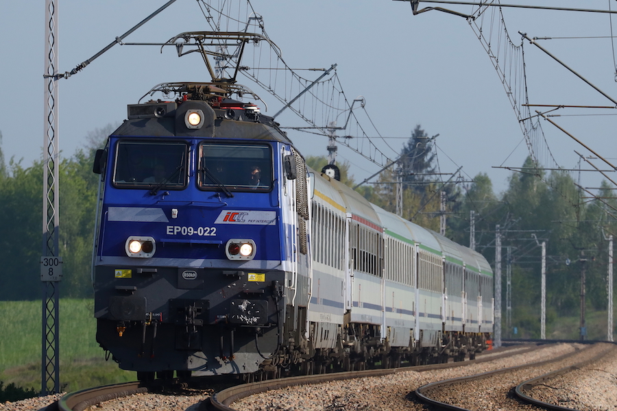 陽炎の向こうから、丸目のEP08型機関車がインターシティ編成を従えて姿を現した。帰国前日の粘り勝ち。これにて我がポーランド遠征は大満足のうちに幕を閉じたのであった。