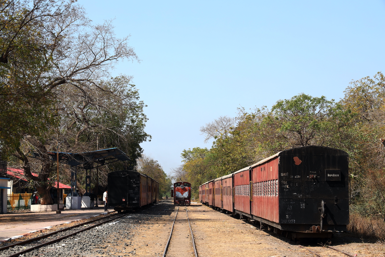 やがて、グワリオール行きの上り始発列車が猛然と駆けてきた。扉から溢れ、屋根まで鈴なりの乗客たち。機関車のエンジンルームの上に座る人もいる。そう、このグワリオール軽便鉄道こそ、インド最後の「屋根乗り」ナローゲージなのであった。