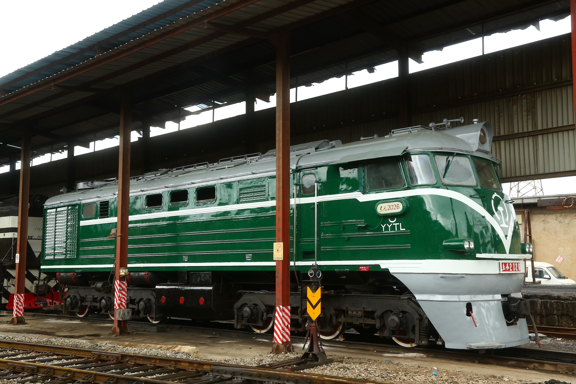 2枚目は中国初の量産型ディーゼル機関車である東風型で、昆明のどこかの工場の予備機として眠っていたものである。