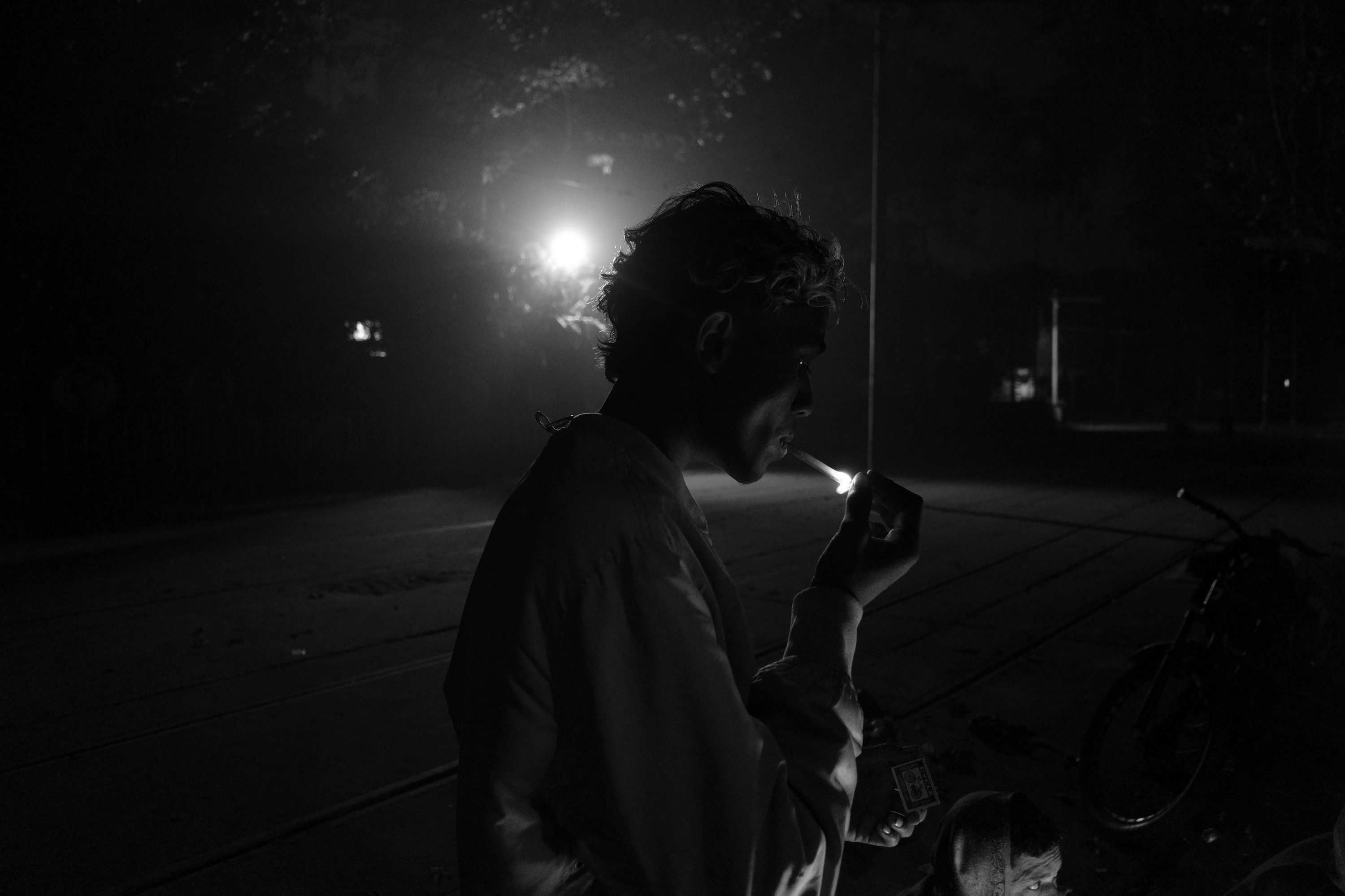 隅の方で、焚き火を灯している少年がいた。声をかけ、揺らぐ炎を一緒に眺める。