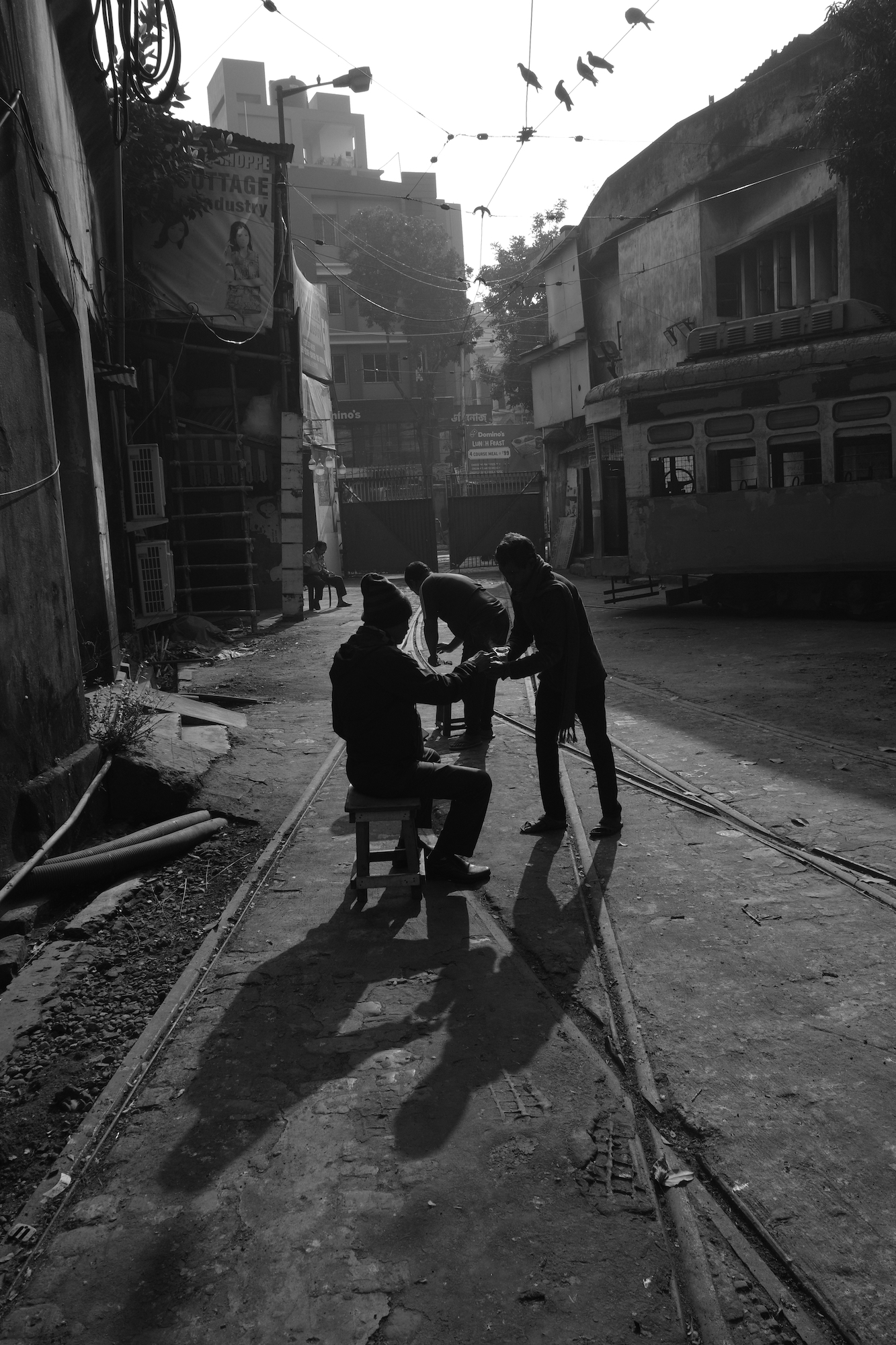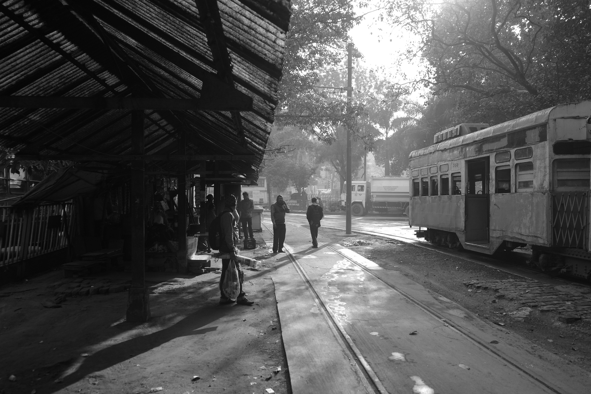 一時間ほどで辺りも明るくなり、人、自動車、人力車、その他あらゆる路上放置物を掻き分けて始発電車が現れた。