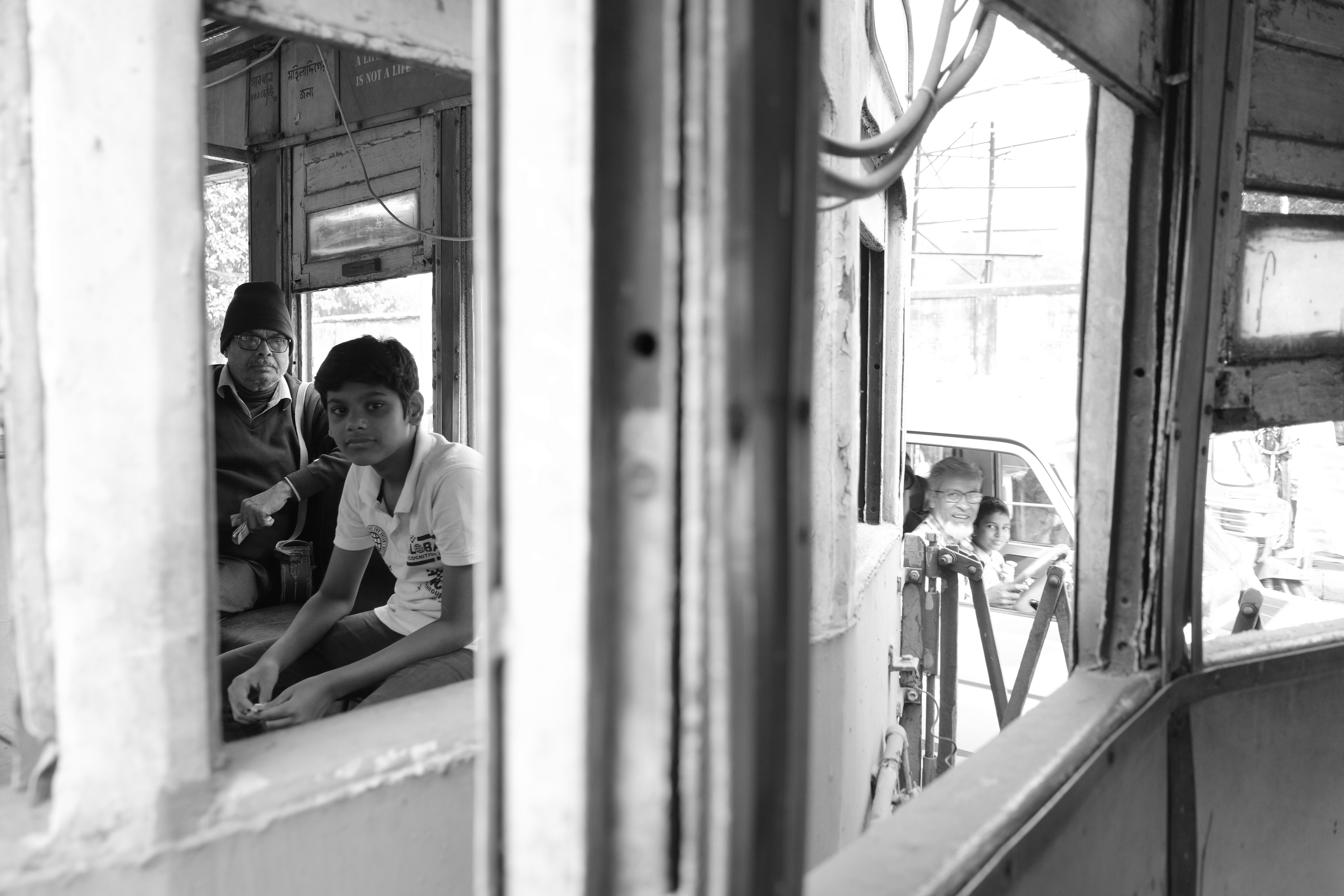 モーターが唸りを上げ、電車は再び濁流のような道路に飛び込んでいく。