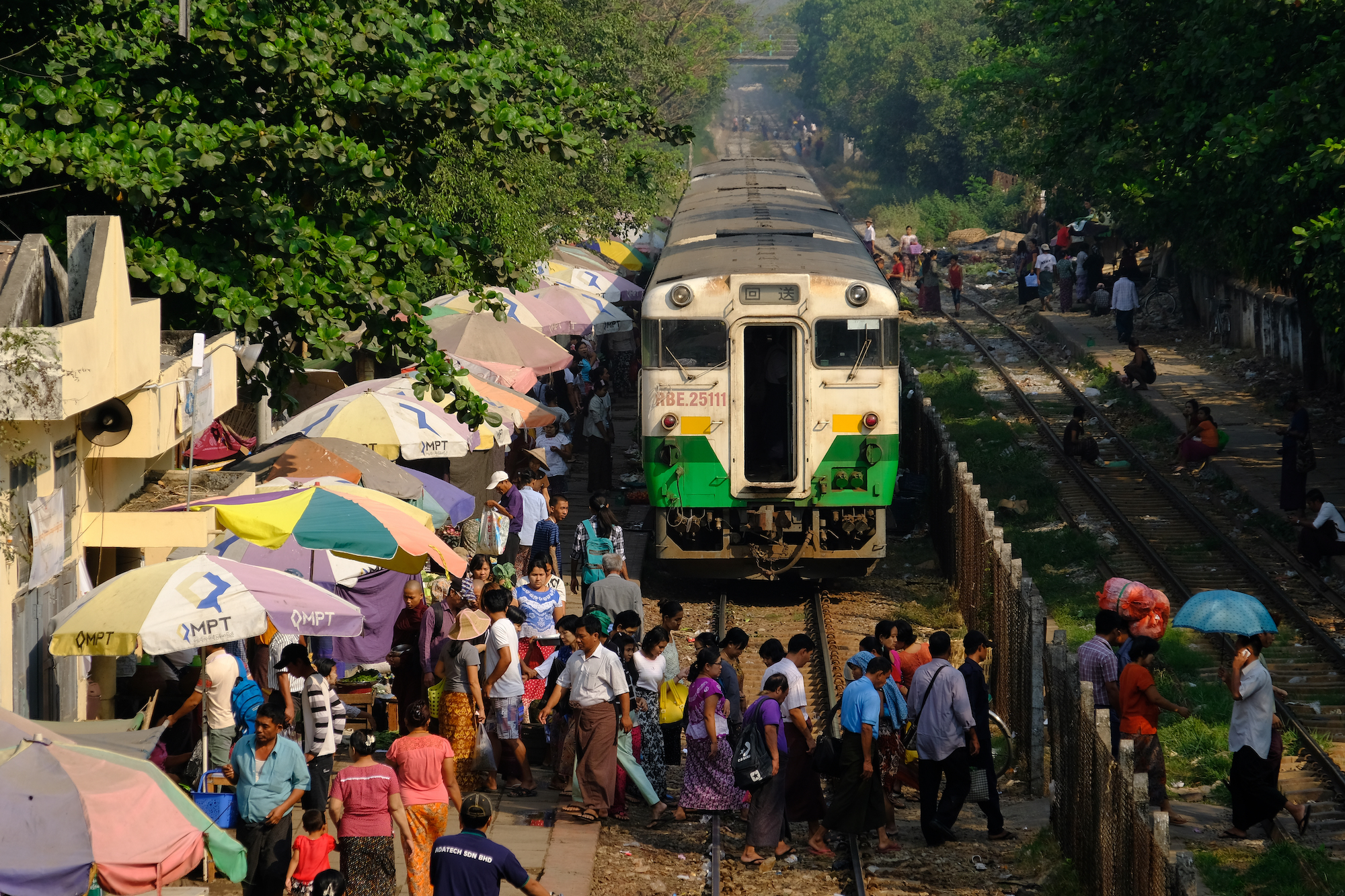 近郊列車が纏っていたこの青と緑の塗装は、ミャンマーの街並みに一番似合っていたと思う。