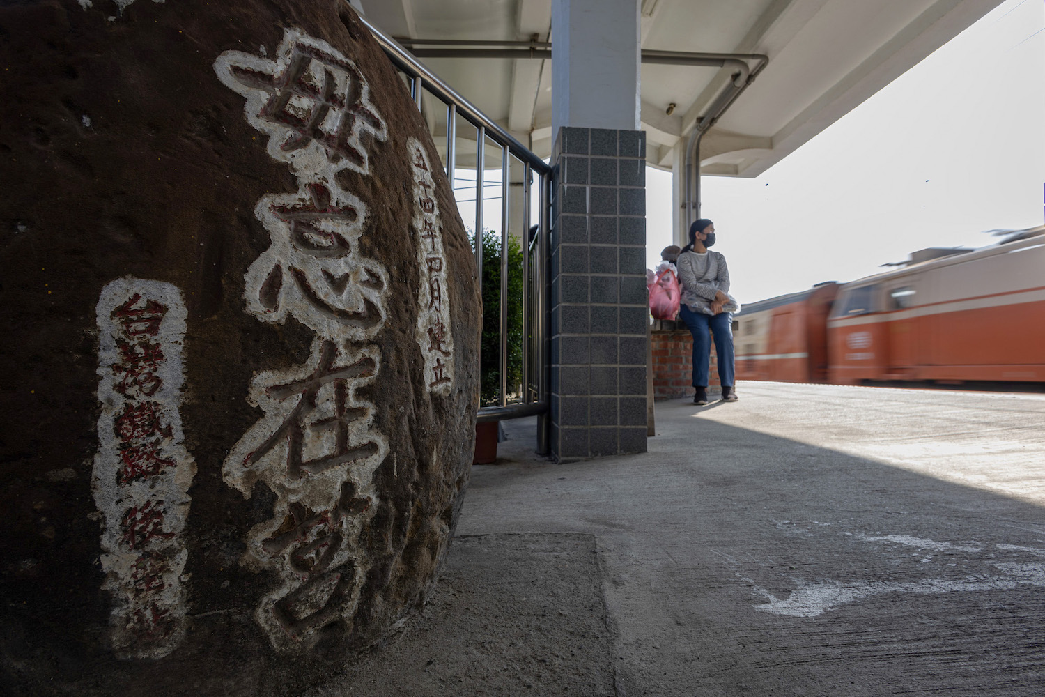縦貫線後壁駅のホームには、「毋忘在莒」の文字が刻まれた石碑も残っていた。