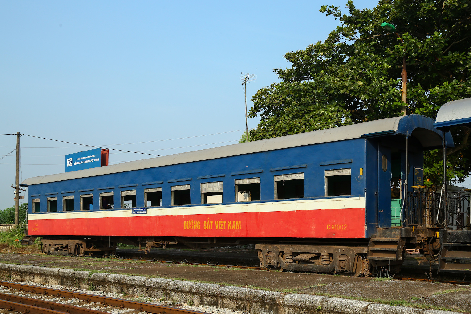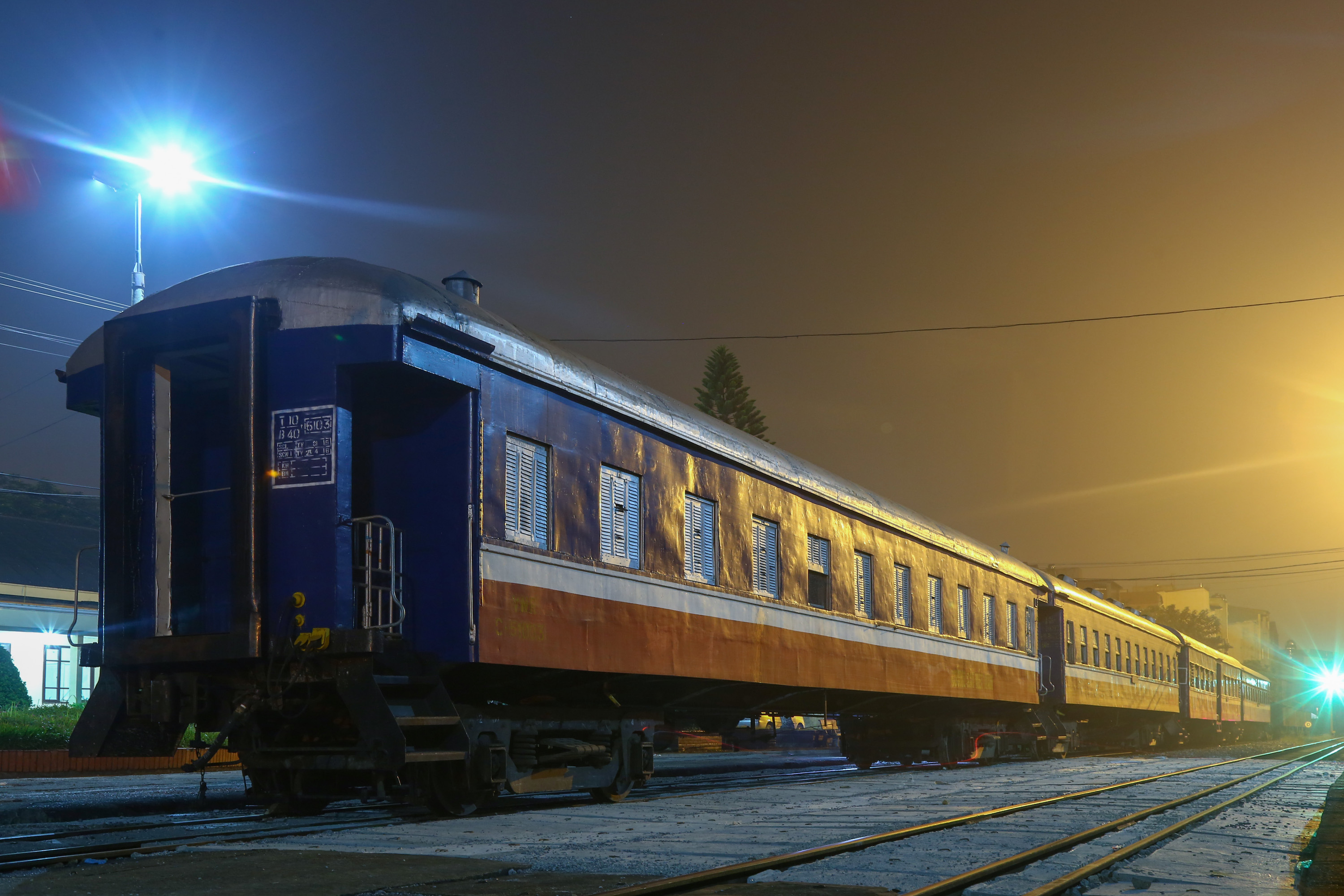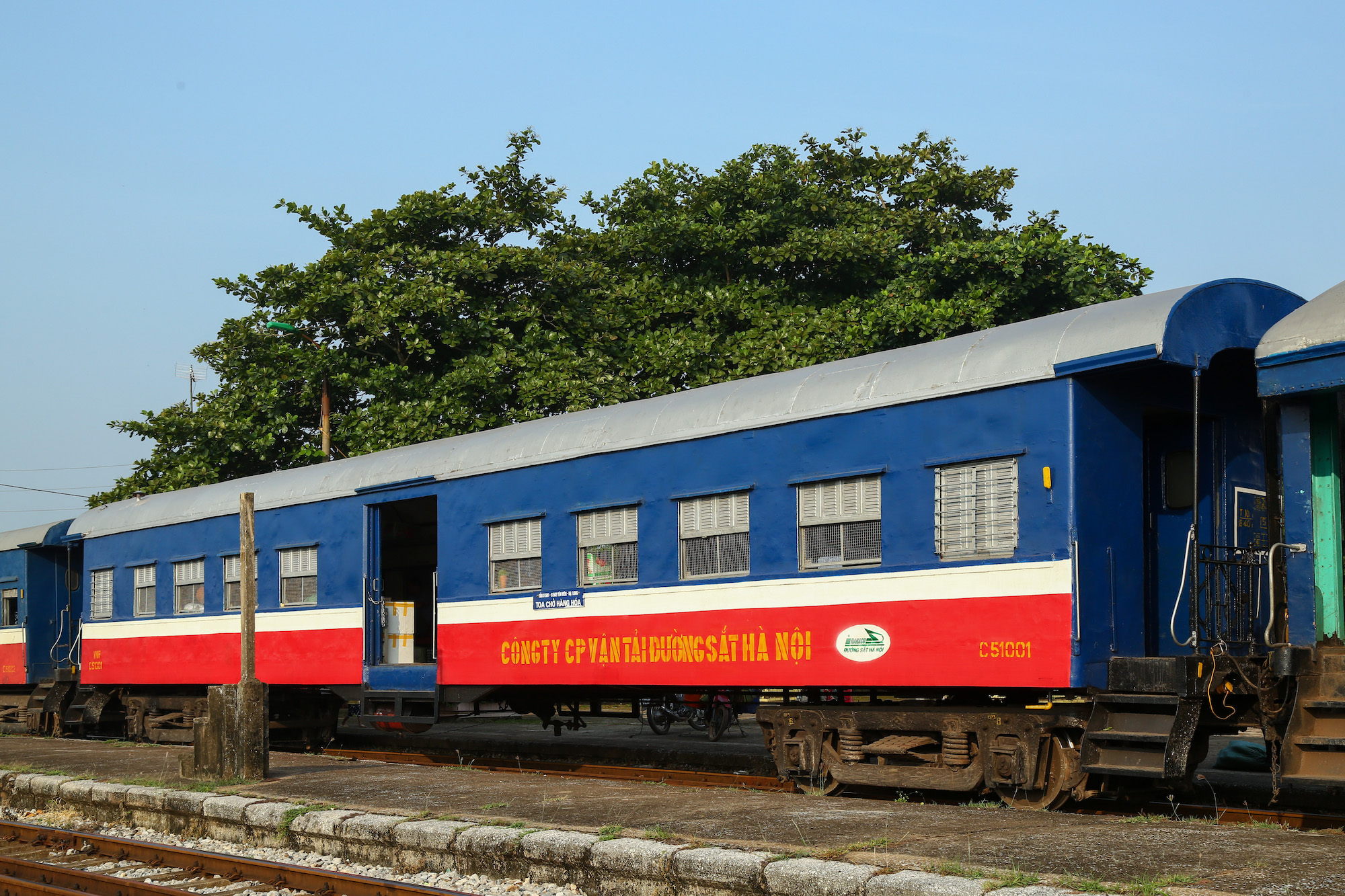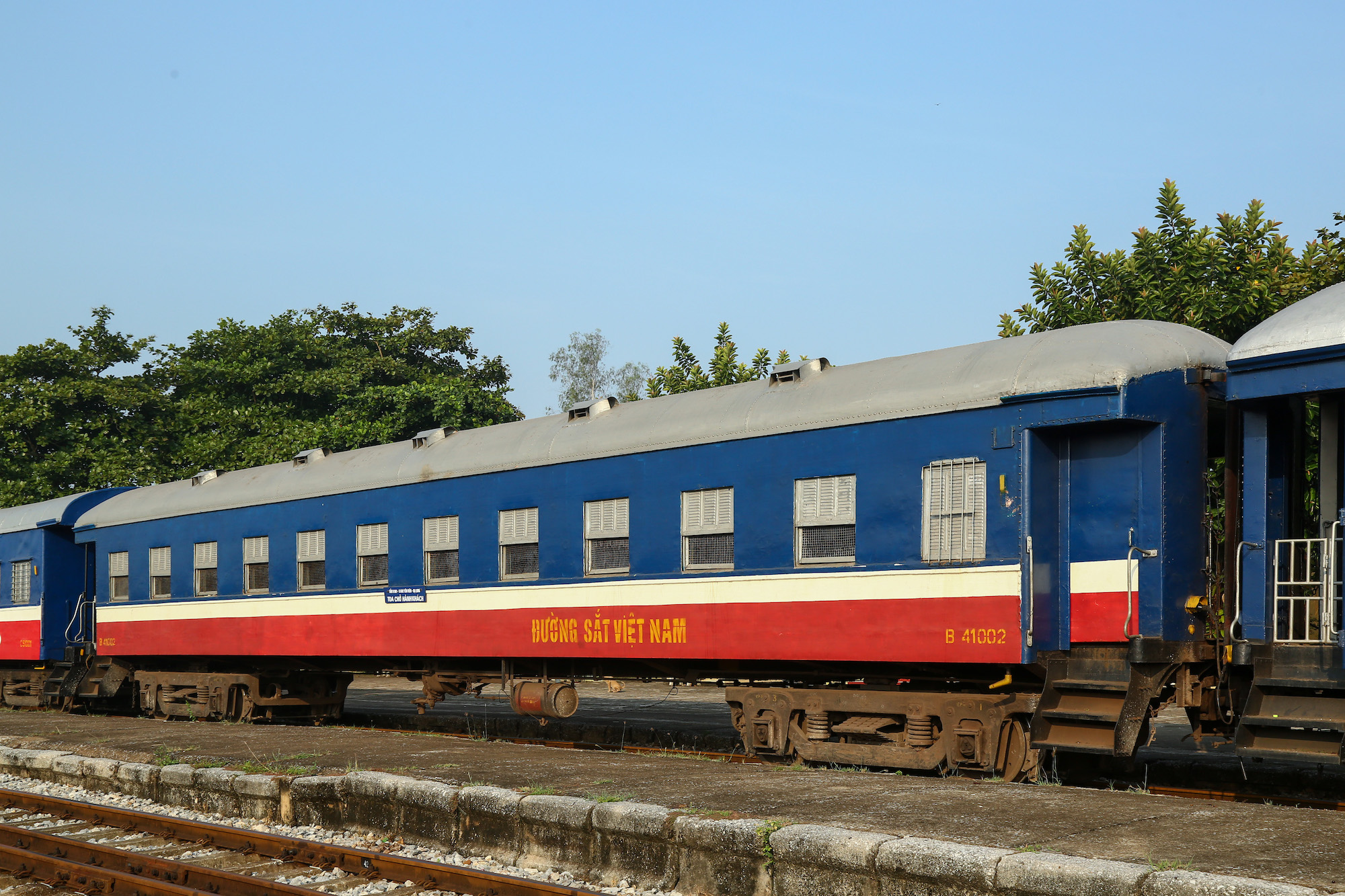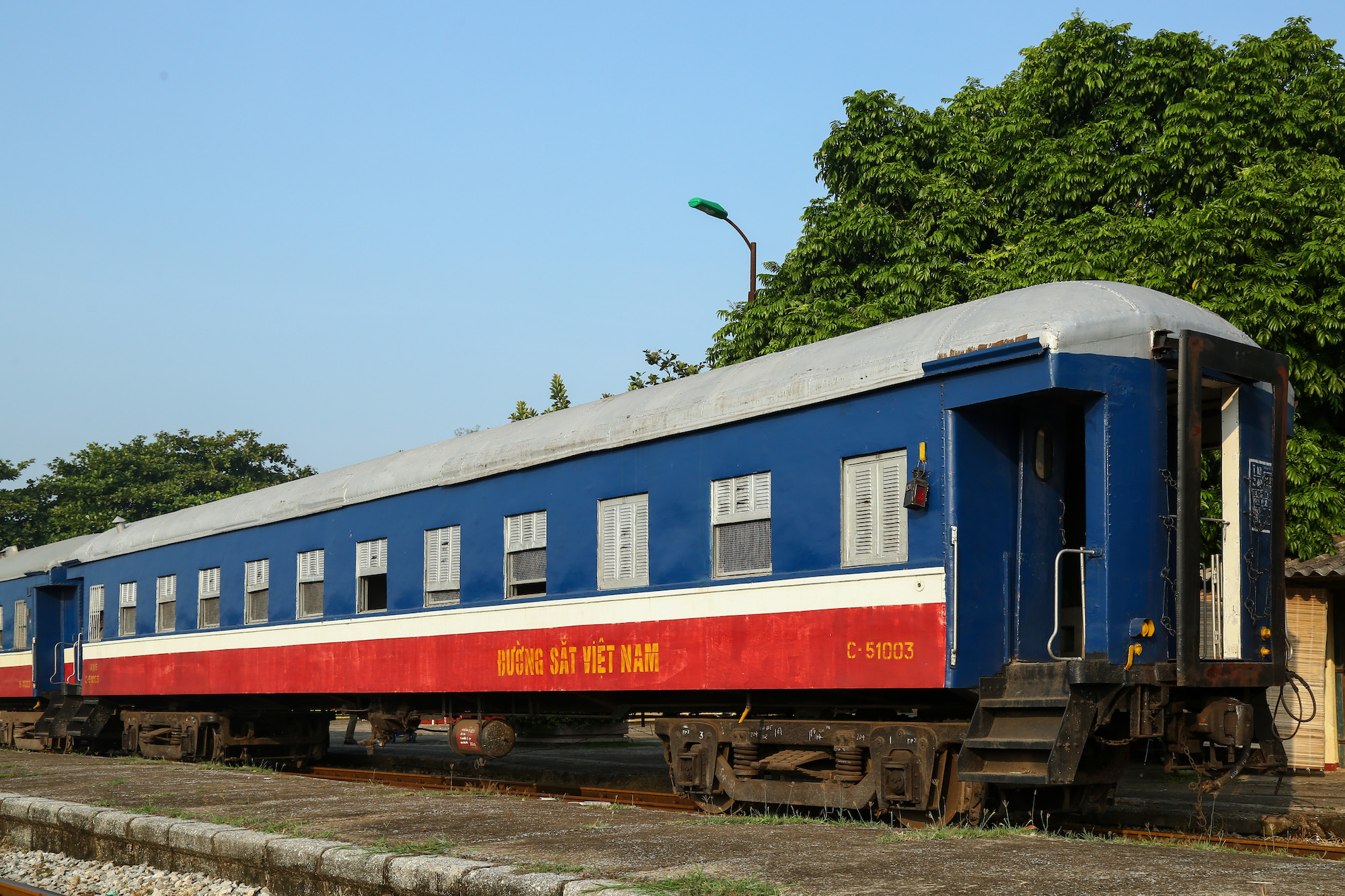 丸屋根の2両は、旧満鉄 (南満州鉄道) の客車だ。凍てつく中国東北向けに造られたのが、今は灼熱のベトナムまで流れてきたと言うのは、まことに数奇な運命である。